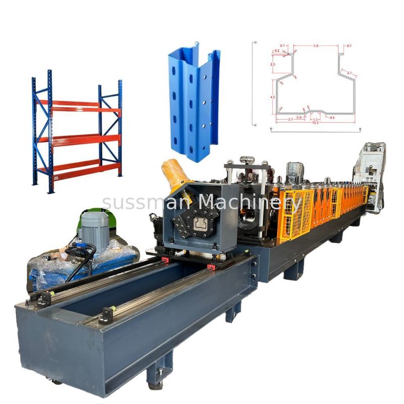 Warehouse shelf upright roll forming machine is widely used in producing upright frame, box beam and step beam. Our intelligent roll forming machine could make wide range of sizes using cantilever type structure, and automatically change by motors from one size to the other not only at width but also at height. The one and only step is to put your required data into our touch screen and wait for few seconds. Machinable thickness is from 1.5-3mm with raw material Cold-rolled Steel, Galvanized Coil, PPGI, Carbon steel, Stainless Steel and Aluminum. Our produced profile meet ISO, CE , FEM standards, and our machine is applied to Warehouse ,supermarket ,industry or home.